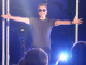 The star spent much of the gig singing along to YouTube videos of early hits like Baby and Never say Never.